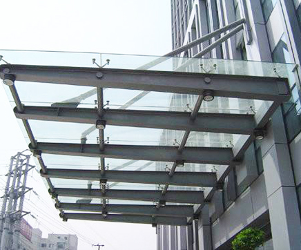 钢结构玻璃雨棚顶部为钢化玻璃,或夹胶安全玻璃,两种都是安全玻璃。